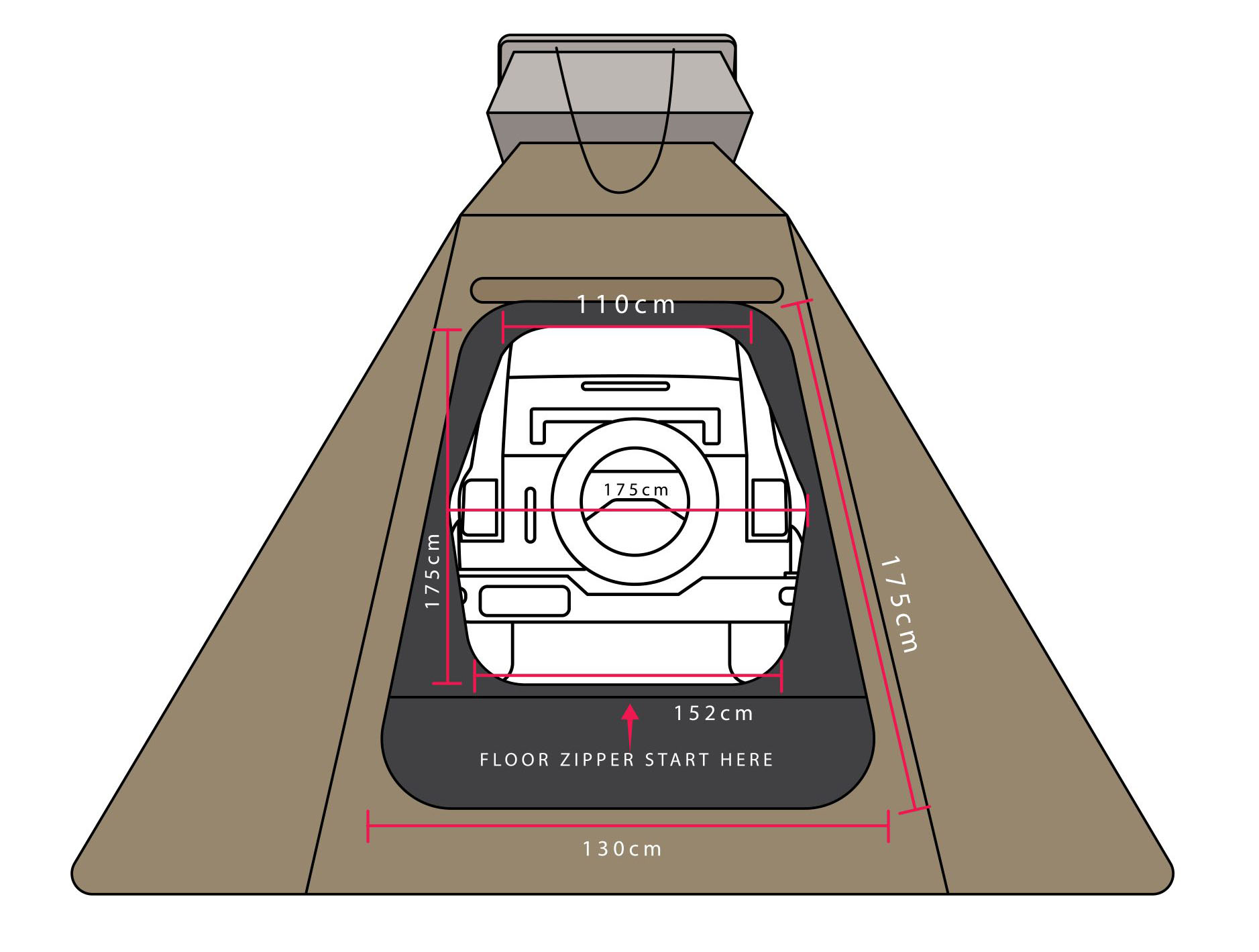 Elle se zippe directement sur l’arrière de la tente, et sa tige de soutien pliable permet une tension parfaite, assurant une structure robuste et bien ajustée.
