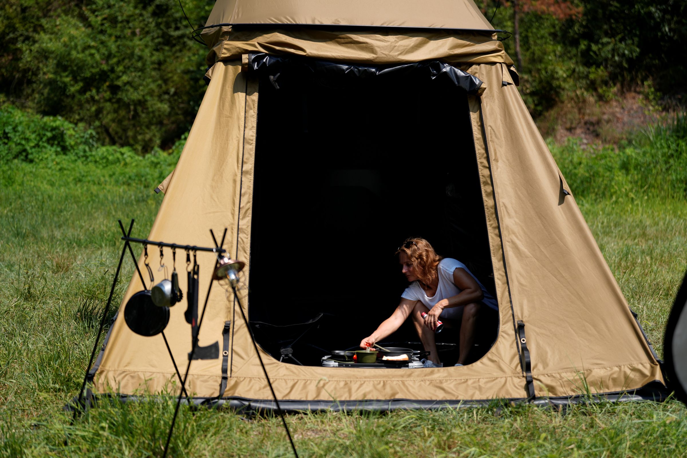 Conçue pour s’adapter à toutes les situations, l’annexe de la Taiga a été spécialement travaillée pour offrir une flexibilité totale. Grâce à sa hauteur réglable et son design optimisé, elle s’adapte parfaitement à votre installation et vous garantit un espace de vie pratique et confortable, quelle que soit la configuration de votre campement.