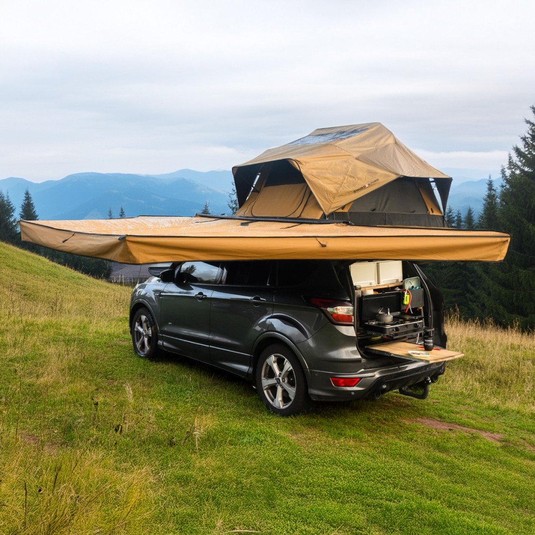 Grâce à sa fixation extérieure sur galerie ou barres de toit, cet auvent ne prend aucune place à l’intérieur du véhicule, vous évitant d’emporter un barnum ou un parasol encombrant. Il se plie rapidement et se range dans un sac compact, vous permettant de conserver de la place précieuse dans votre coffre pour d’autres équipements (réfrigérateur, caisses de rangement, matériel de couchage…). Une solution intelligente pour les voyageurs soucieux de l’espace !