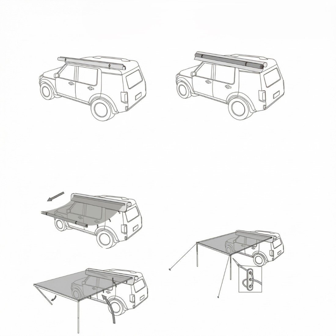 L’ensemble des éléments se range directement dans la housse intégrée de l’auvent