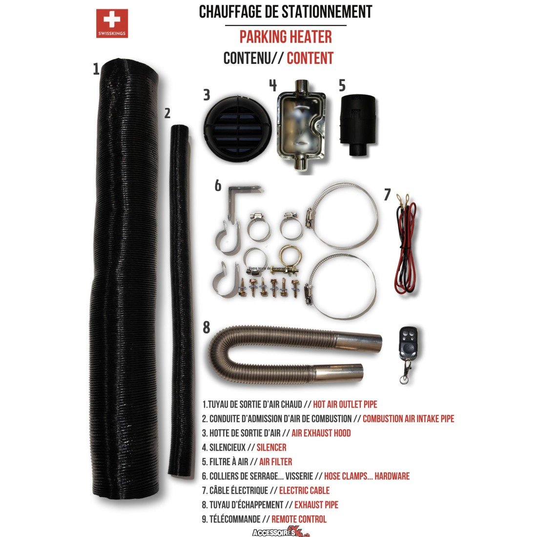 • Réchauffeur d’Air Diesel Tout-en-Un : Puissance de chauffe : 8 kW ; Type de carburant : Diesel ; Tension nominale : 12 V – 24 V