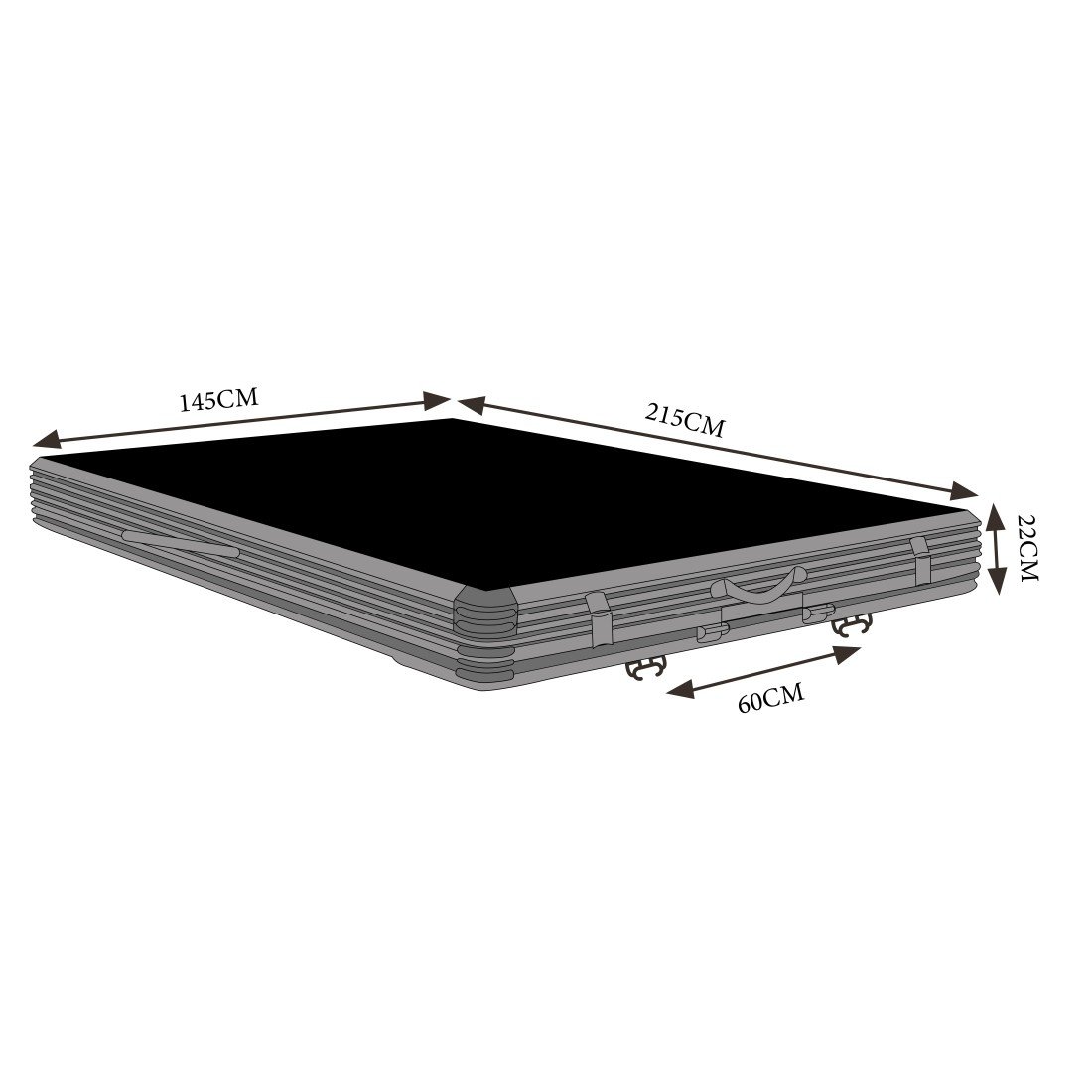 | Taille fermée | 215 x 145 x 22 cm |
