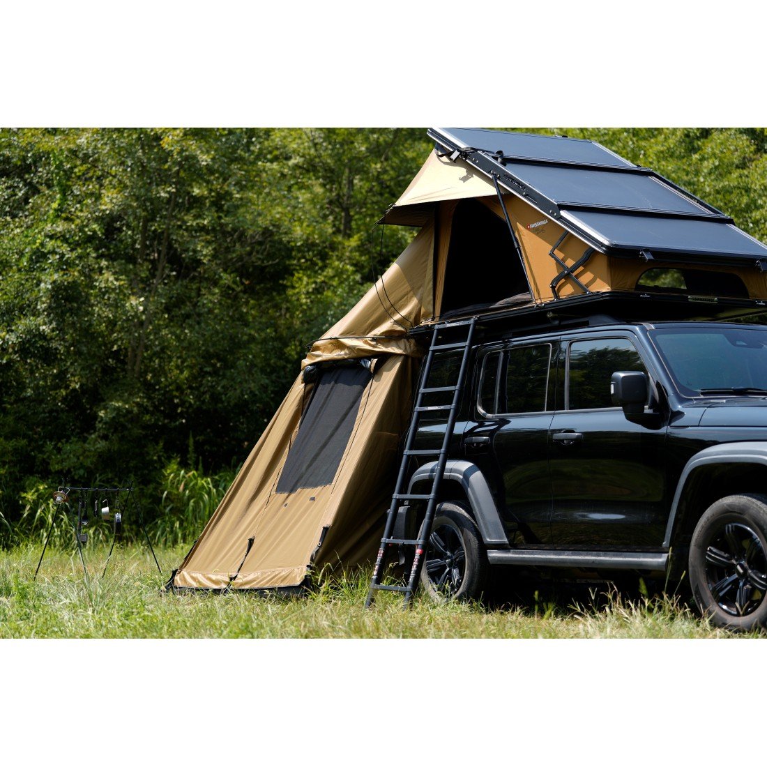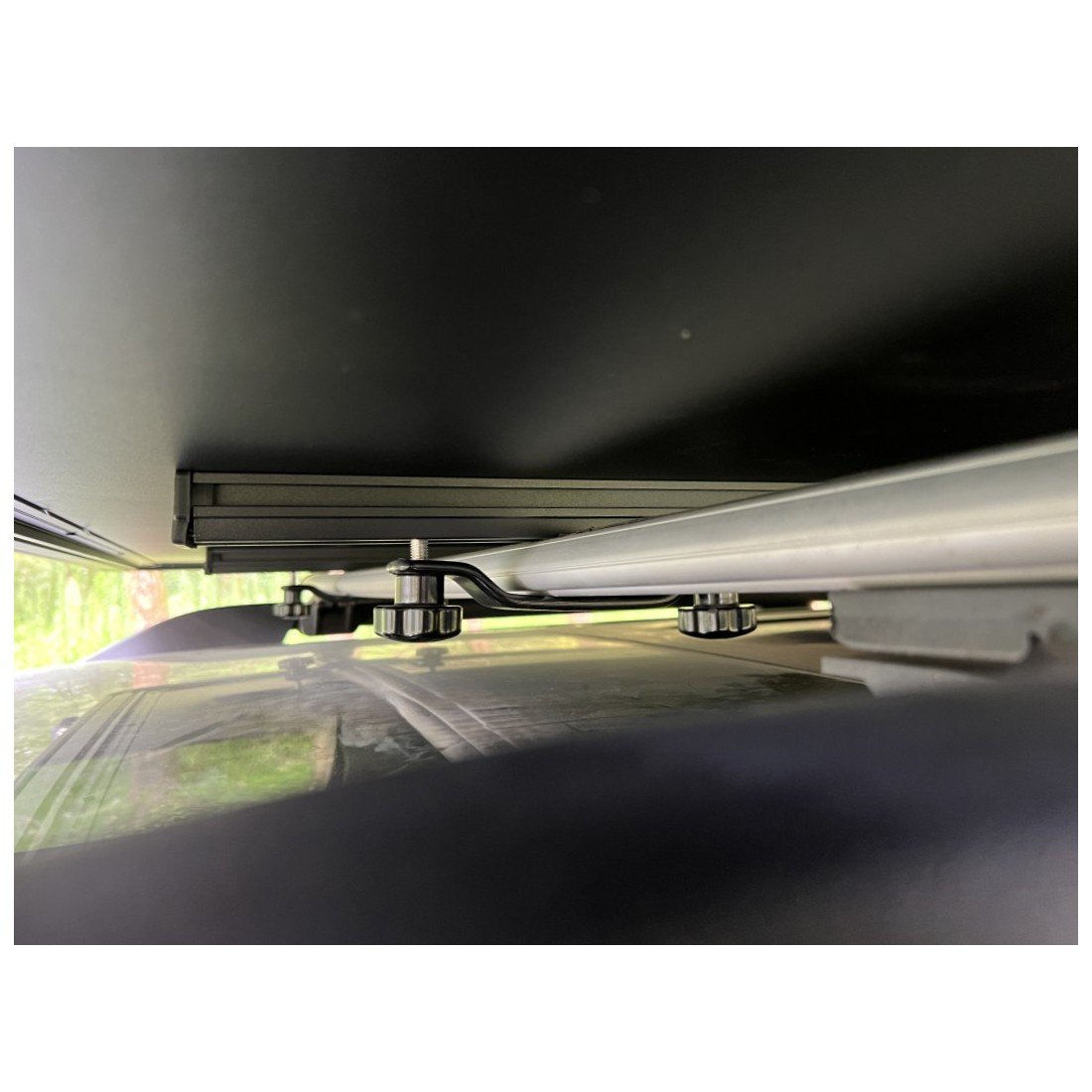 - 2 barres en aluminium prémontées espacées de 60 m pour connecter la tente aux barres de toit du véhicule. Installation rapide et simplifiée.